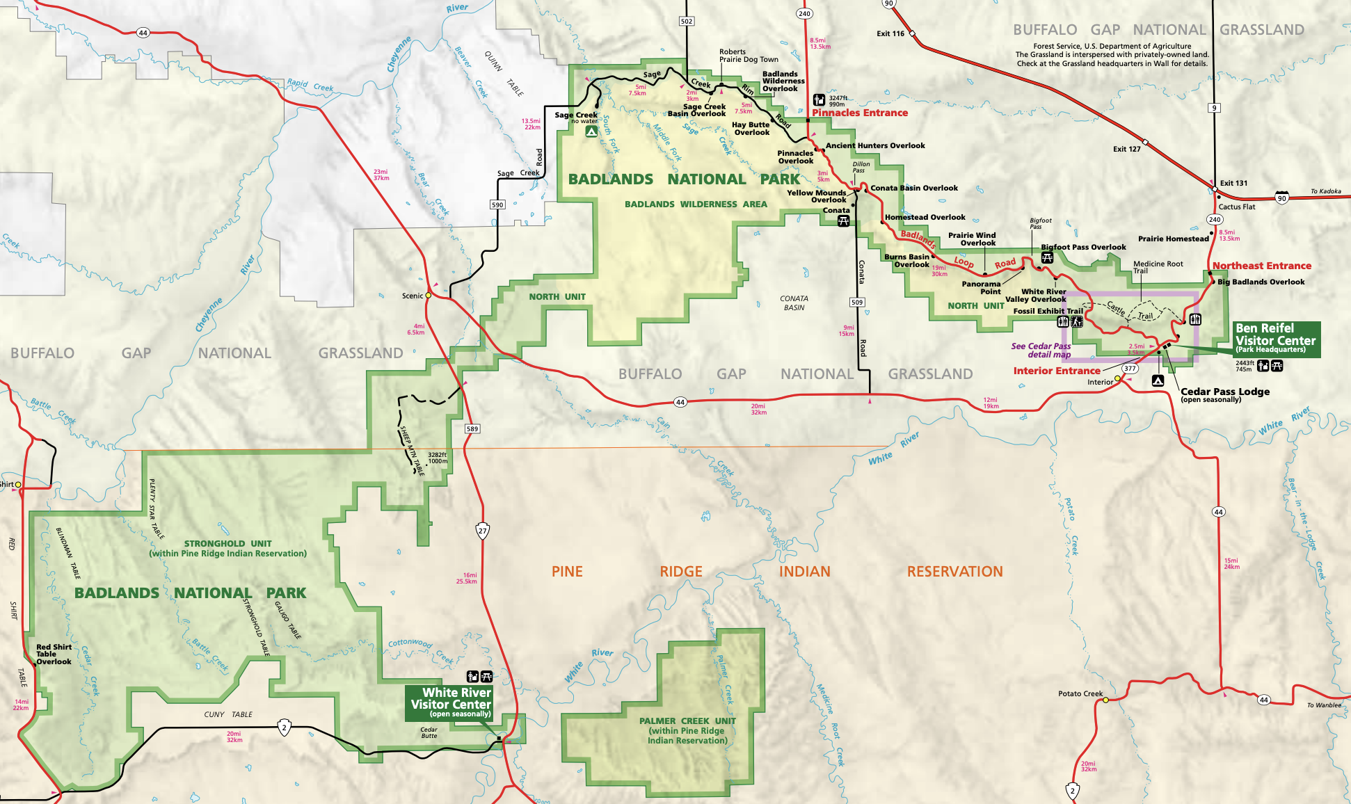 There is one lodge located in the national park called the Cedar Pass Lodge that you can book if you prefer to stay in the park. The closest town to Badlands National Park is Wall, South Dakota. Wall is only 10 minutes away from the park entrance. There are plenty of places to stay and is the location of the iconic Wall Drug. You can also find a place to stay in Rapid City, South Dakota which is about an hour away. Rapid City is a much larger city and is most likely the place you would fly into if you are coming to the Badlands by plane.