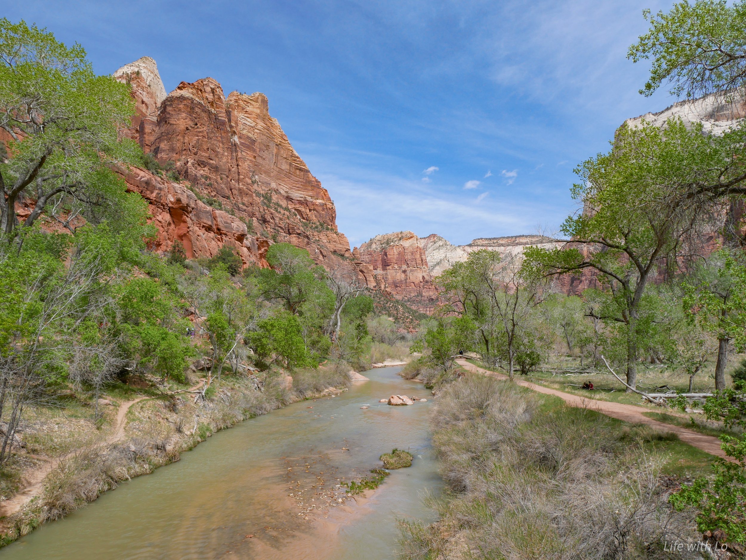 Riverside Walk: 2.2 miles roundtrip. This is a paved trail that brings you to the trailhead for the Narrows (mentioned below).